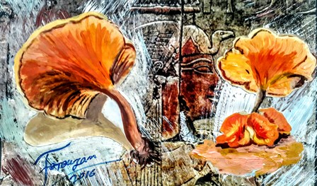 Drawing fungi is one of the joys of mycology, and something that anybody can try. Art has been a part of mycology since earliest times and published in many international journals and books. Line drawings are essential for showing details of fungal structure, whether in a field guide or fungal monographs. Ancient Egyptians produced a number of hieroglyphic depictions of psychedelic mushrooms on temples and through hieroglyphic texts throughout the country. A new attractive tool to raise national and international awareness on fungal conservation is drawing of fungi in many attractive portraits as ancient Egyptians documented them every where. In this occasion, The First International Conference on Fungal Conservation in the Middle East and North of Africa, I participated with these portraits to attract young mycologists in MENA and to apply a new tool for conserving fungi.