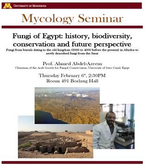 وقم عبد العظيم بإلقاء محاضرة تحت عنوان "فطريات مصر: التاريخ، التنوع، الحفاظ والافاق المستقبلية" يوم الخميس 6 فبراير 2014 بجامعة مينيسوتا حضرها عدد كبير من دارسى وعلماء الفطريات وامراض النبات